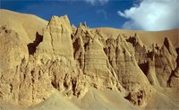 THE PANGONG LAKE : This route takes the visitor past the picturesque villages of Shey and Thikse, and turns off the Indus valley by the side valley of Chemrey and Sakti. The Ladakh range is crossed by the Chang-la (18,000 feet / 5,475 mtrs) which despite its great elevation is one of the easier passes, remaining open for much of the year even in winter, apart from periods of actual snowfall. Tangse, just beyond the foot of the pass, has an ancient temple.